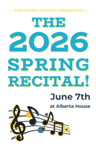 SAVE THE DATE: This year’s Piano Party / Studio Recital will be held at Alberta House on Sunday, March 7th. Two recital times are available – 5:00pm or 6:30pm. More info will be announced soon to our students and families! Student registration is $30. Families members and friends are free to attend at no cost.